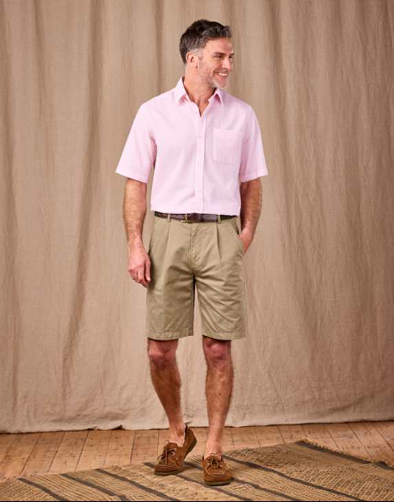 A pair of well-cut shorts is a staple for every gentleman's summer wardrobe. Our men's pleat front and flat front twill shorts, in a palette of soft summer hues, are perfect for the warmer months.