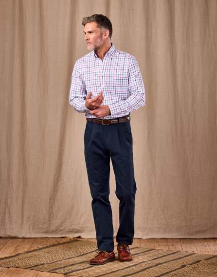 The men's pleated front chinos from Joseph Turner are extremely versatile. Update your wardrobe with these classic cut casual trousers made from pure washed cotton.